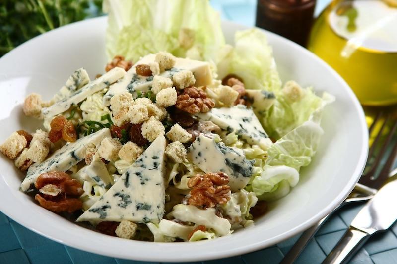 Jakie składniki są kluczowe do przygotowania sałatki z serem pleśniowym?